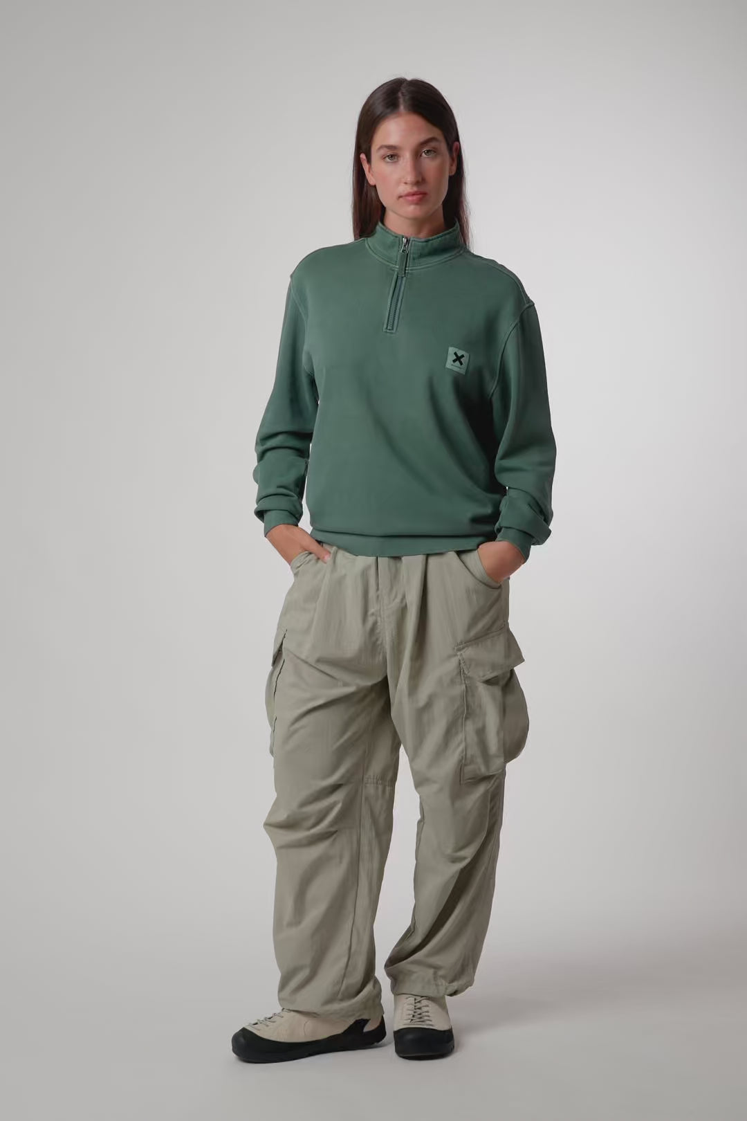 TREKKING GREEN ICONIC HALF ZIP CREW