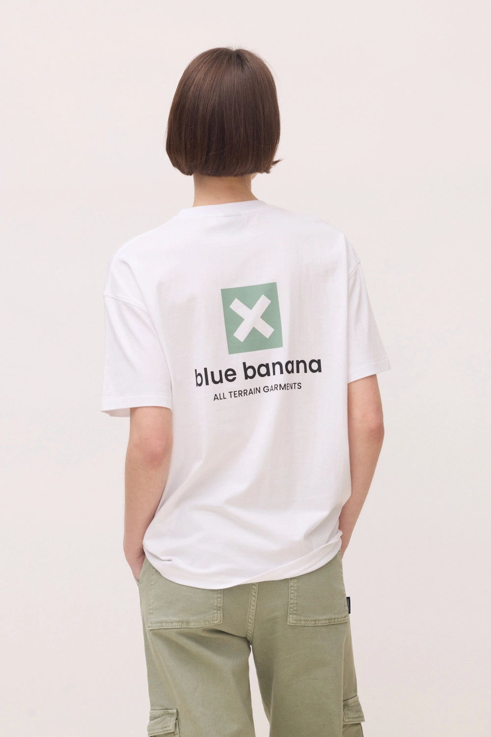 T-shirt con stampa frontale sul petto e sul retro realizzata in 100% cotone organico.