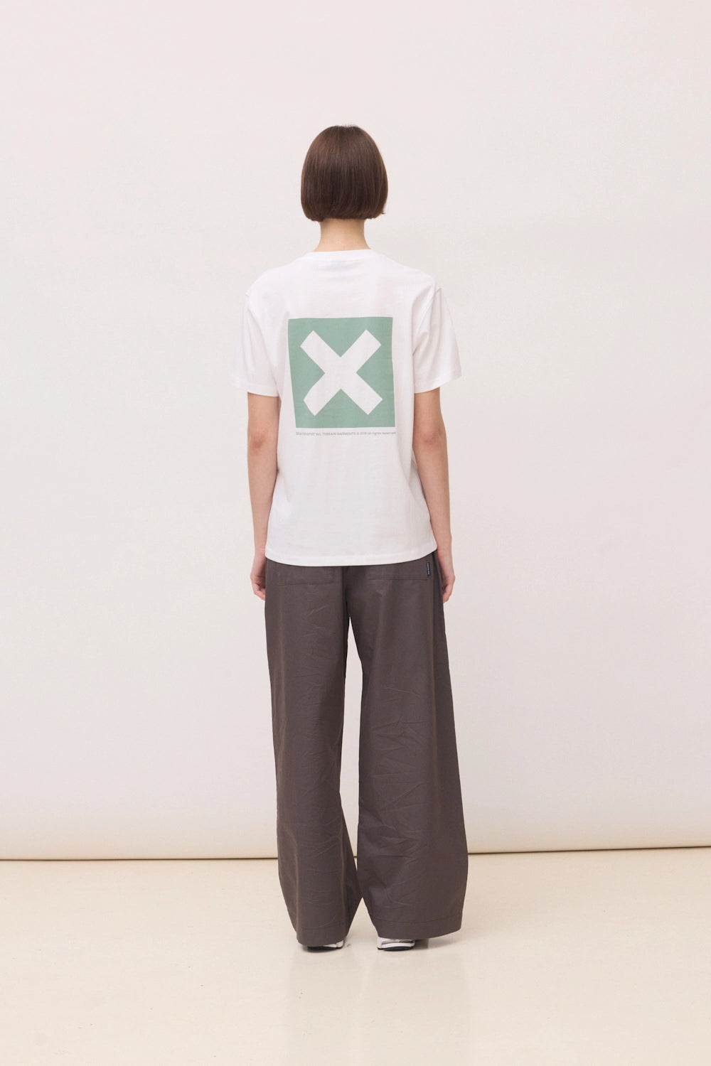 T-shirt con stampa frontale e sul retro. Confezionata con 100% cotone organico.