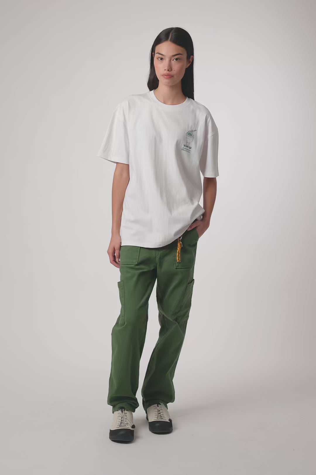 Maglietta con stampa frontale in alto a sinistra e stampa centrale sul retro. Realizzata in 100% cotone biologico e dalla vestibilità oversize.