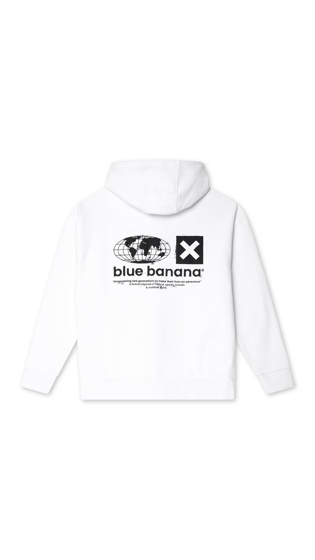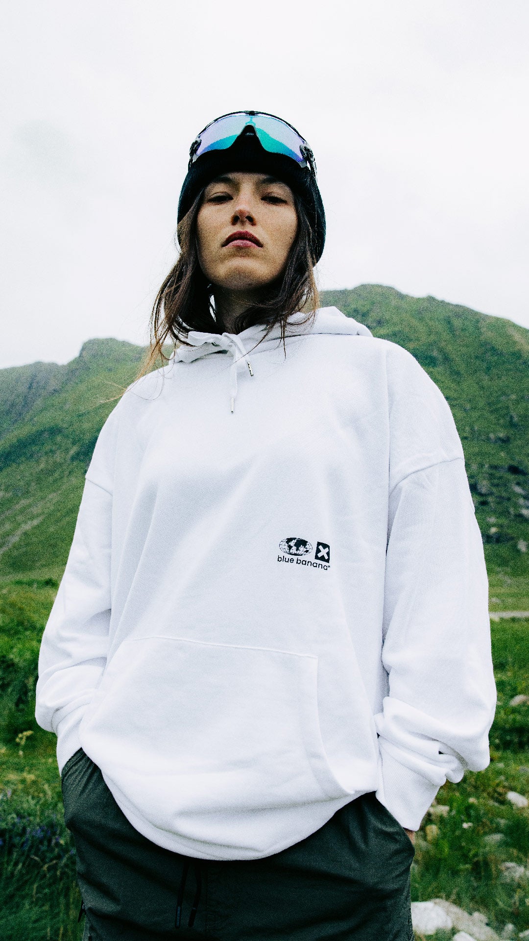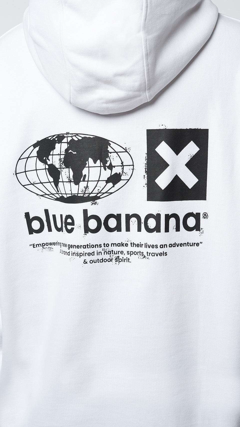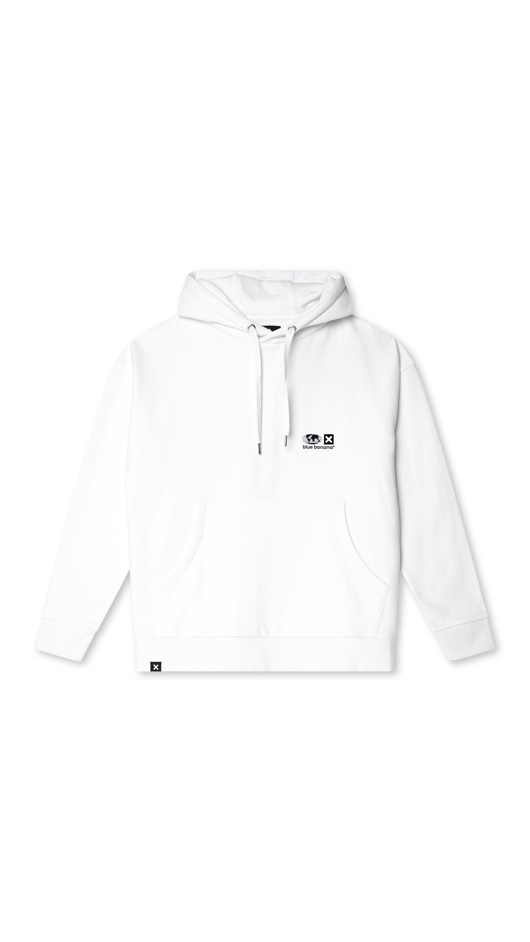 Felpa con cappuccio con stampa frontale in alto a sinistra e stampa centrale sul retro. Tasca anteriore centrale inferiore con aperture su entrambi i lati. Realizzata in 100% cotone biologico e vestibilità oversize.