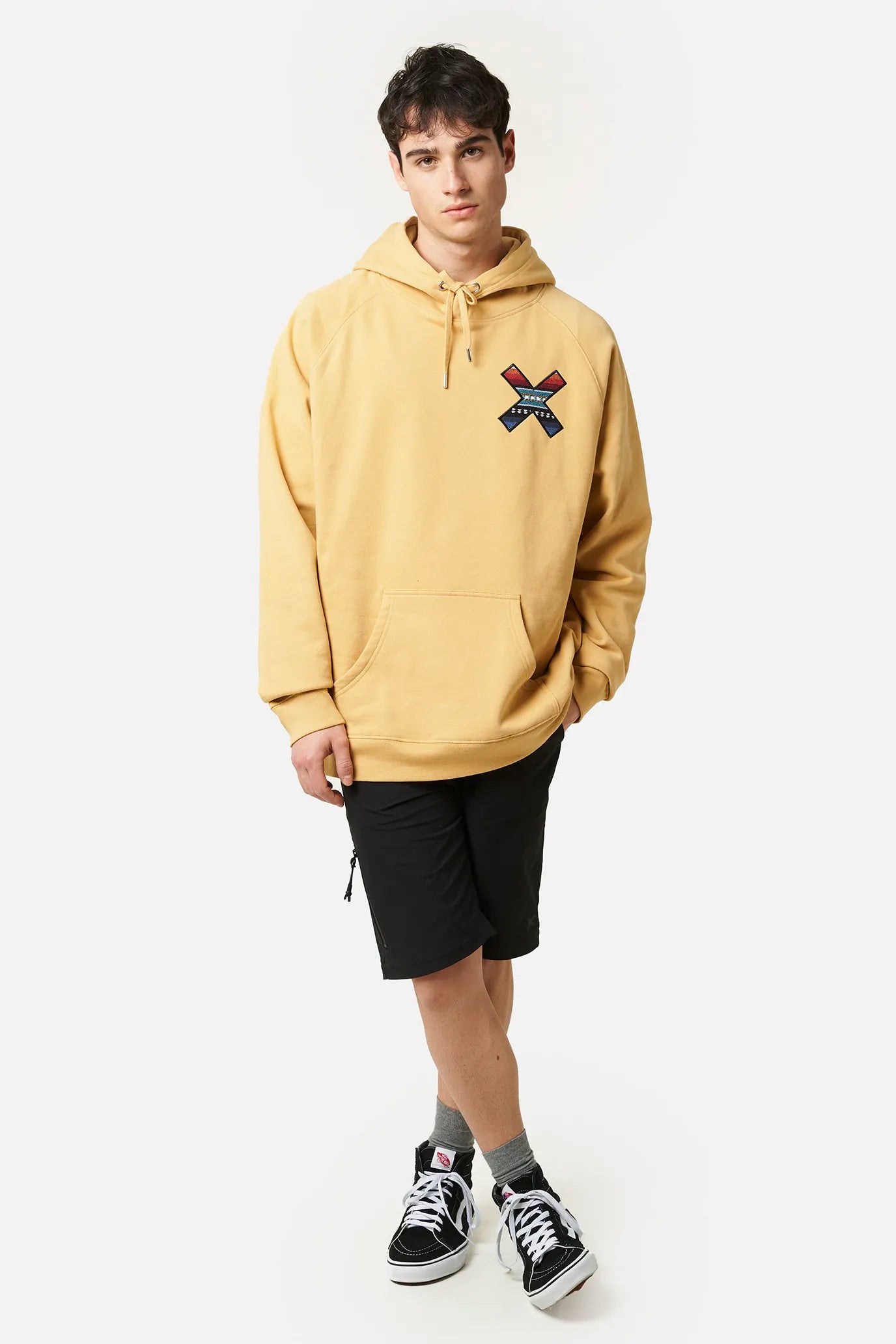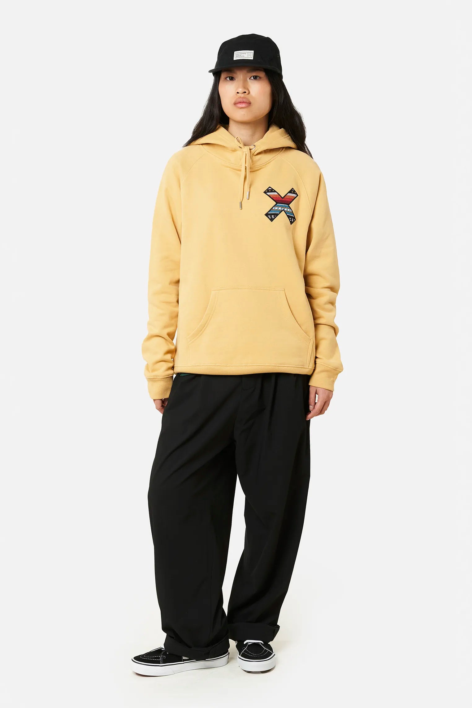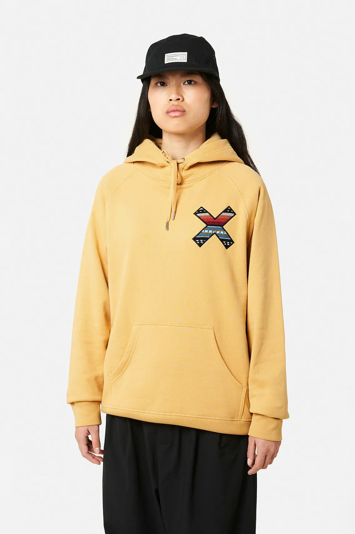 Sudadera con capucha con nuestra clásica X bordada: delantera en el pecho y trasera en la espalda. Confeccionada con 100% algodón orgánico y corte regular fit.
